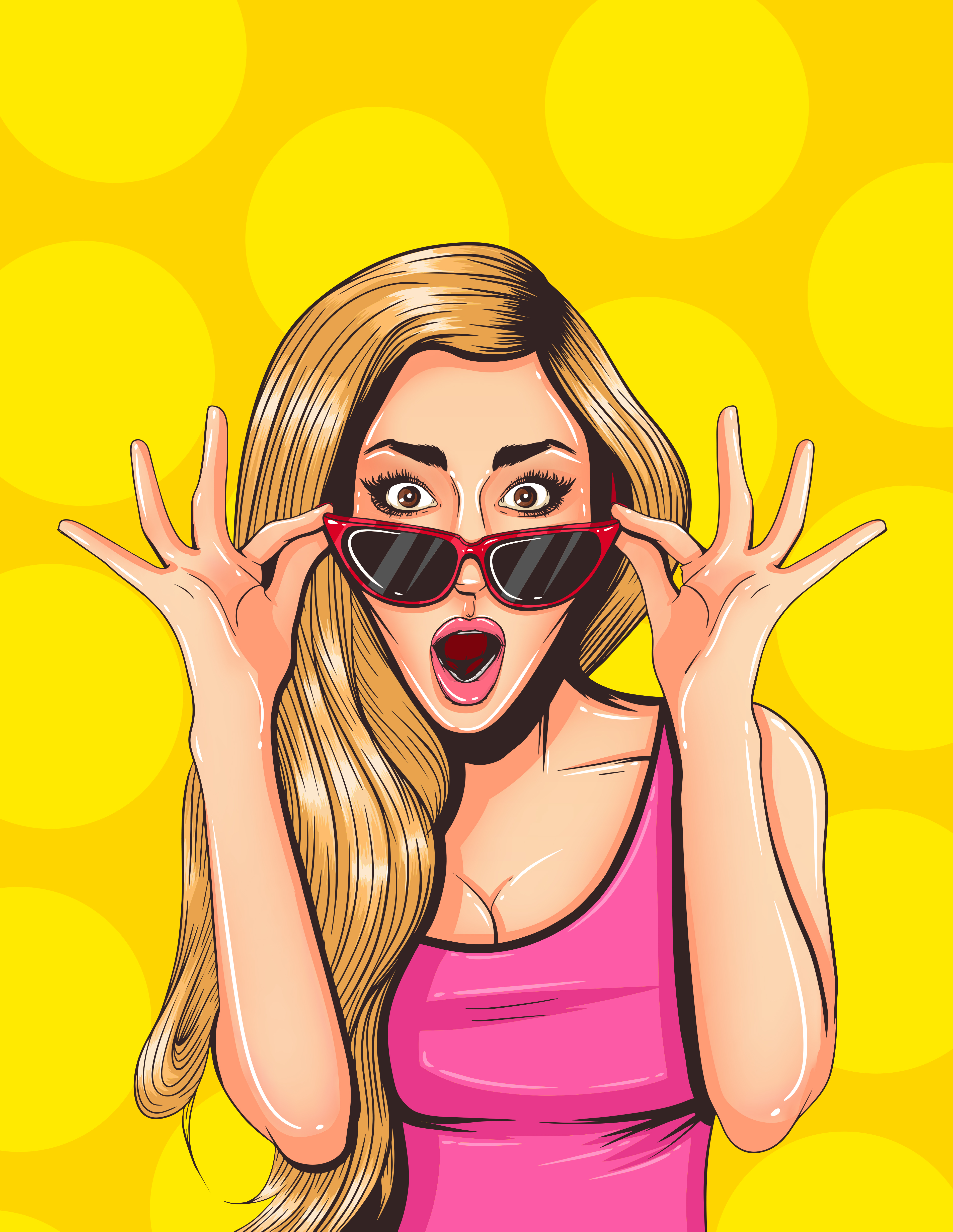 Previous Image Next Image Pop Art Vintage advertising poster. Confused pretty girl Pop Art Vintage advertising poster. Confused pretty girl vector illustration